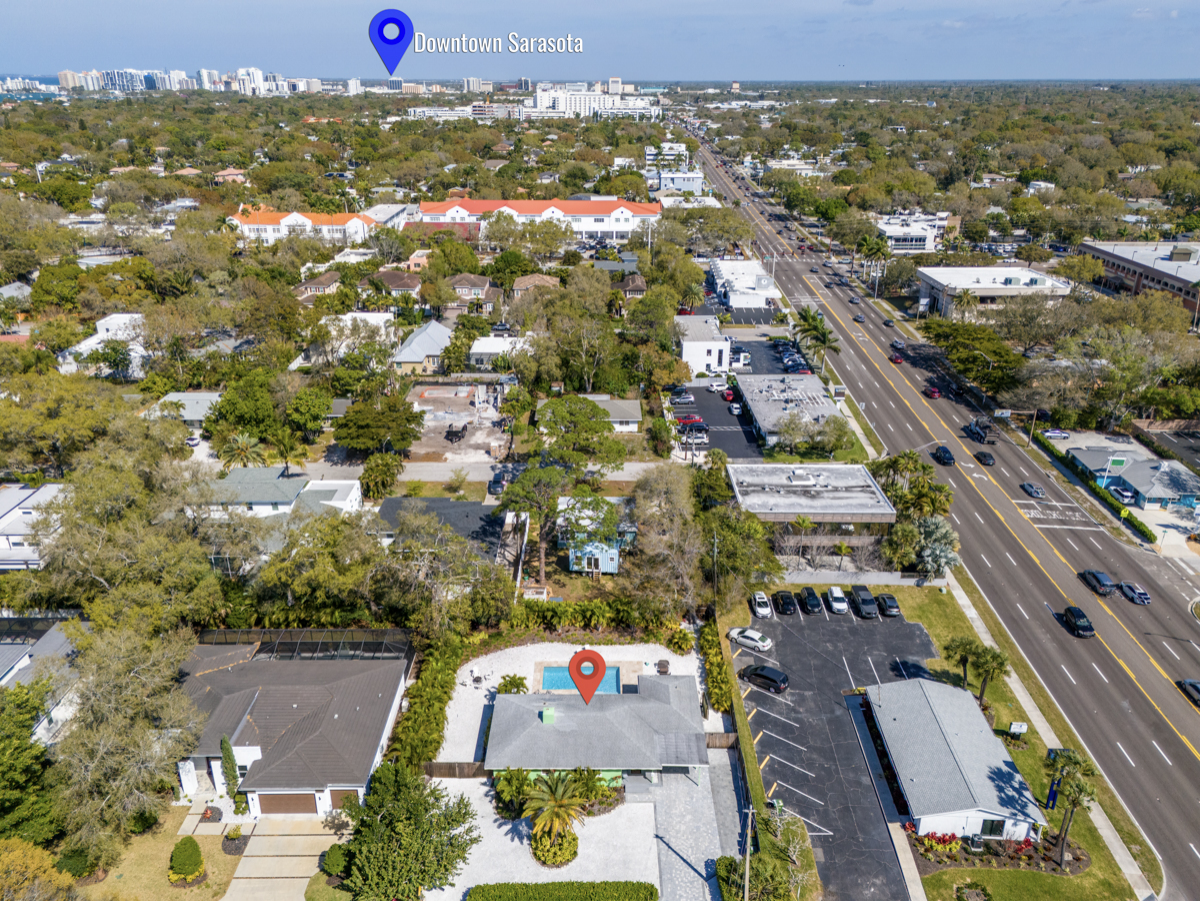 HTD Salt Water Pool and Palm Tree Heaven! SIESTA KEY PALM PARADISE is minutes away from the #1 beach in the US, with white quartz sand & the clear turquoise water of the Gulf Coast. This spacious single home, stylishly updated & freshly landscaped sits on a peaceful quarter of an acre full of Palm Trees & sea shells giving you the Paradise Island vibes! This highly desirable house sits in the perfect location minutes from the TOP rated beaches, Siesta Key Village & top favorite restaurants!