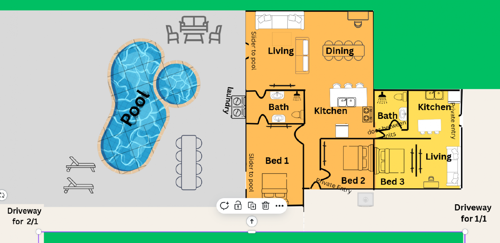 This unit is a lock-out studio in a larger house. The Pool and washer dryer may be shared with other guests.